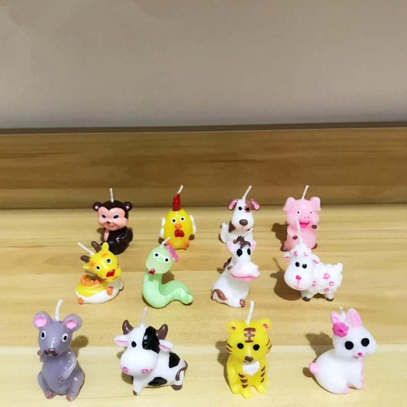 4,12 зодиакальные свечи в форме животных на день рождения, около 5x3 см, каждый размер зодиака немного отличается.