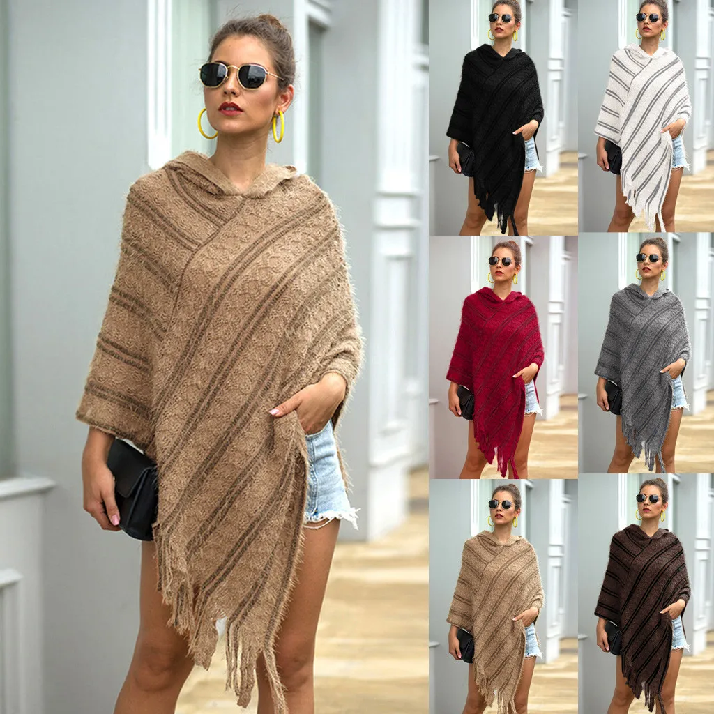 Женский вязаный кардиган в стиле пэчворк, зимний кашемировый кардиган, шаль, пончо, элегантная накидка, пончо для женщин