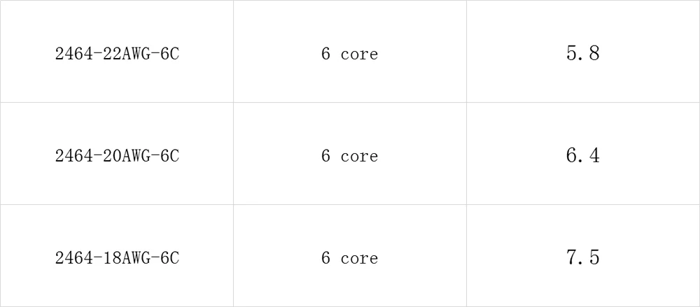 Материал проводника: Оловянная медь Изоляции Материал: ПВХ Материал внешней оболочки: ПВХ Номинальная Напряжение: 300/300 V Номинальная температура:-40 ~ + 80 ℃ Спецификация/количество внутренних сердечников/структура каждого проводника/приблизительный Внешний диаметр (мм) ±0. 2