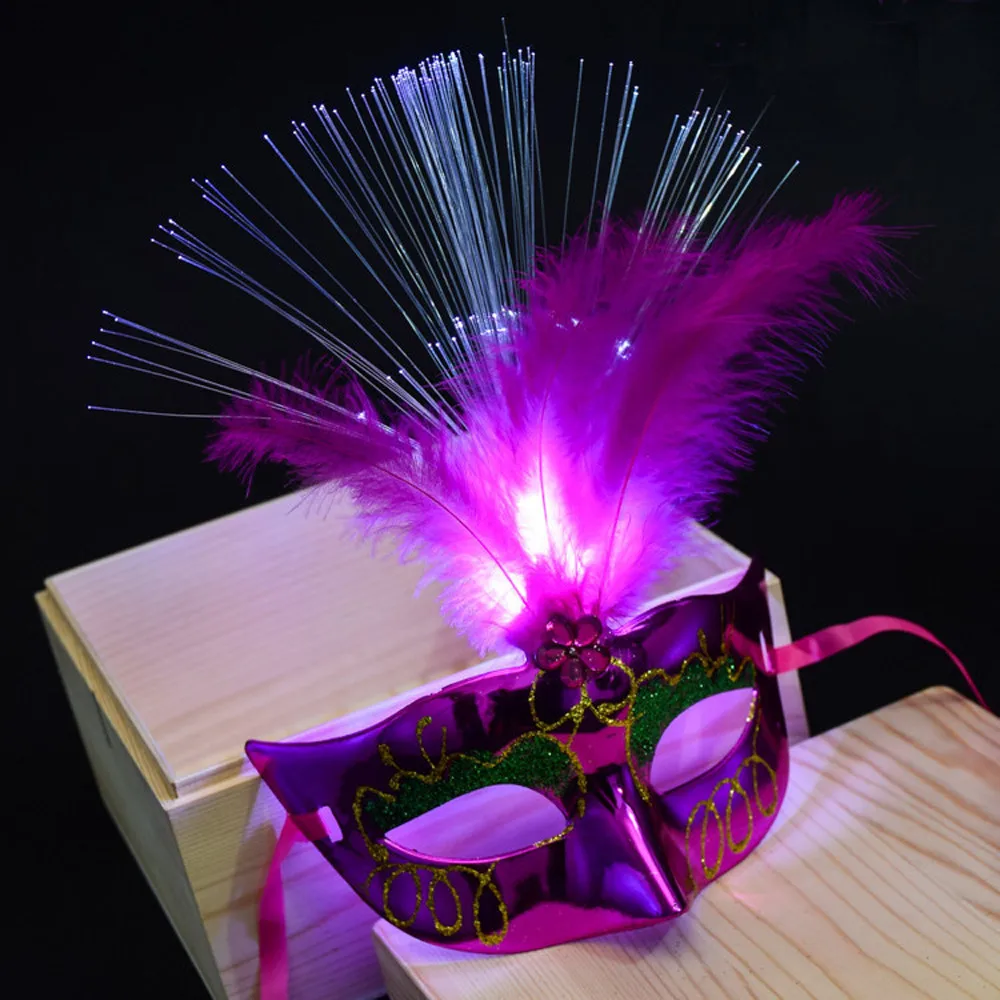Венецианский светодиодный маскарадный костюм на Хэллоуин для маленьких мальчиков и девочек, маскарадные Вечерние Маски принцессы с перьями