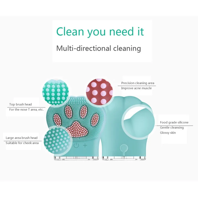 Кошачий коготь дизайн силиконовый Очищающий Инструмент ультразвуковой зарядный инструмент для чистки лица щетка для мытья красоты устройство для ухода за кожей