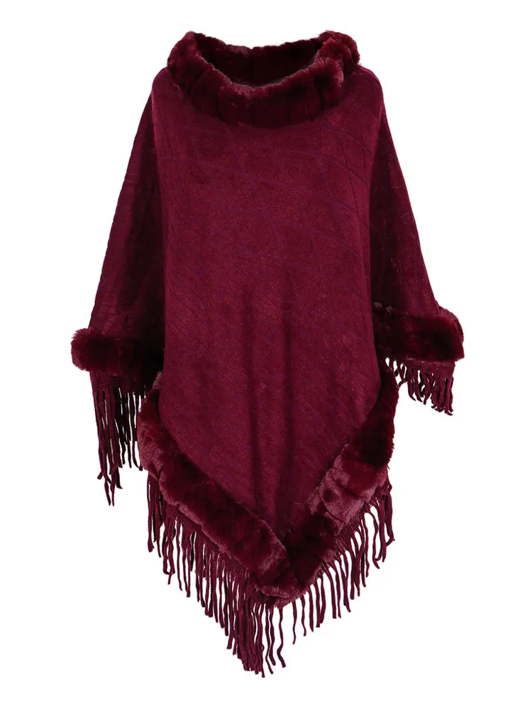 Женская Лоскутная накидка, кашемировая накидка с меховым воротником, пончо для осени и зимы