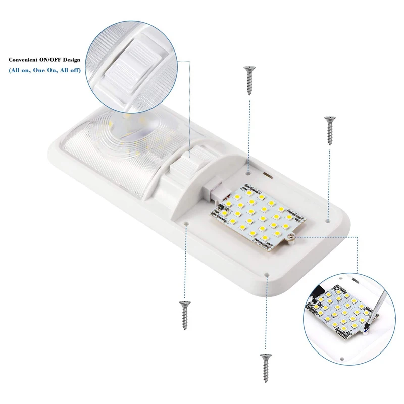 Вы обнаружите, что этот купольный светильник станет идеальной заменой для вашего автомобиля, автофургона, прицепа, светильник ing, кемпера и лодки. Светодиодный дисплей, выполненный из одной штуки, оснащен проводным дисплеем. У этого есть две неполярности. Все, что вам нужно сделать, это просто снять старый светильник, применить этот новый светильник по тону кожи, с гайками и винтами, существующая проводка и основание, а затем установить его. Также имеется выключатель питания, который используется для самостоятельного включения/выключения с одной или обеих сторон. Очень удобный и энергосберегающий.