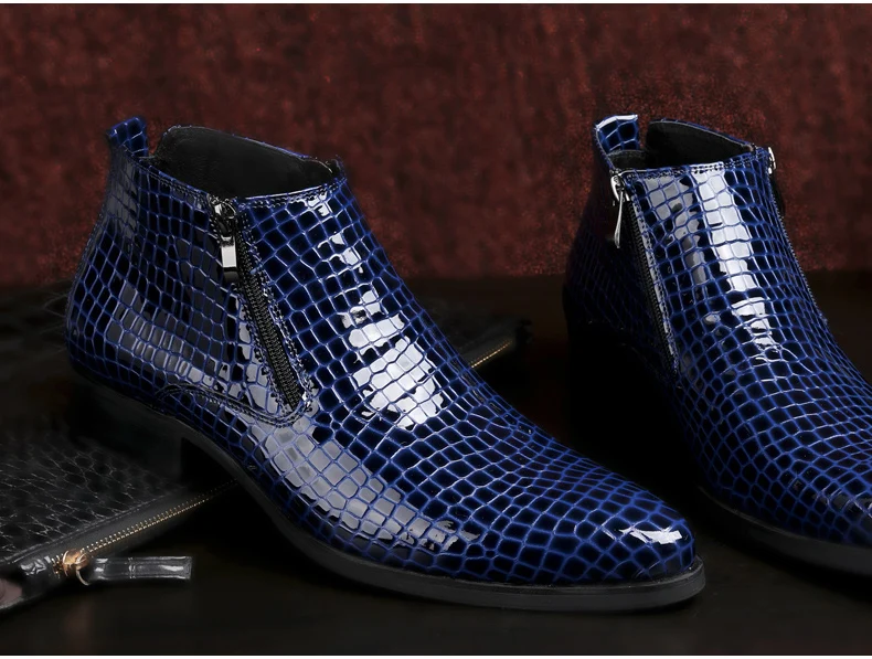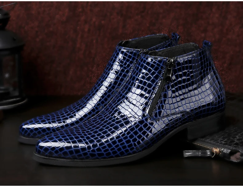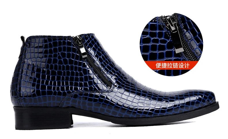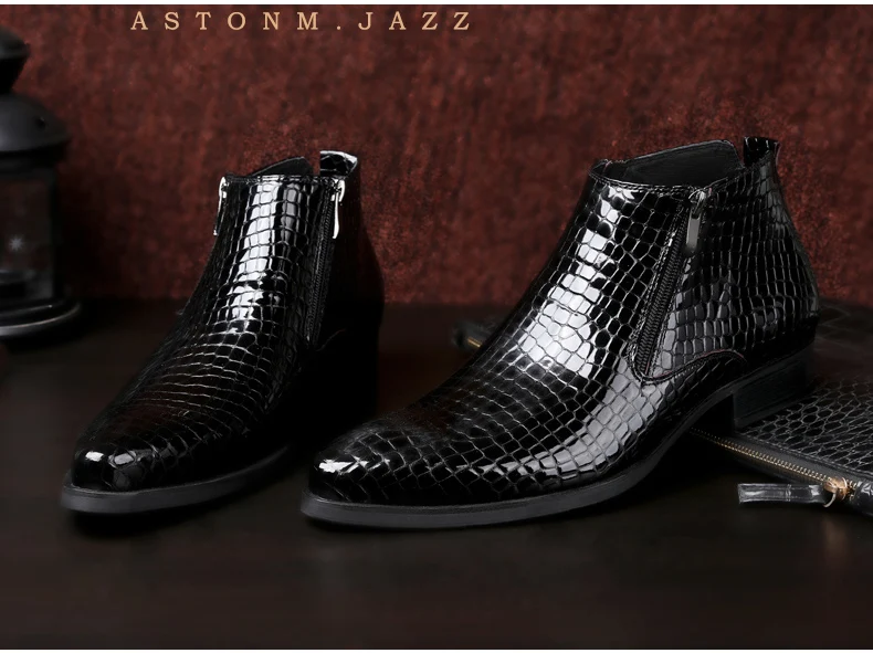 Мужские Ботильоны черные ботинки из натуральной кожи мужские зимние ботинки из крокодиловой кожи на молнии с принтом Большие размеры 46, 47, 48