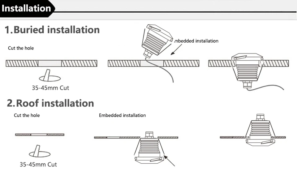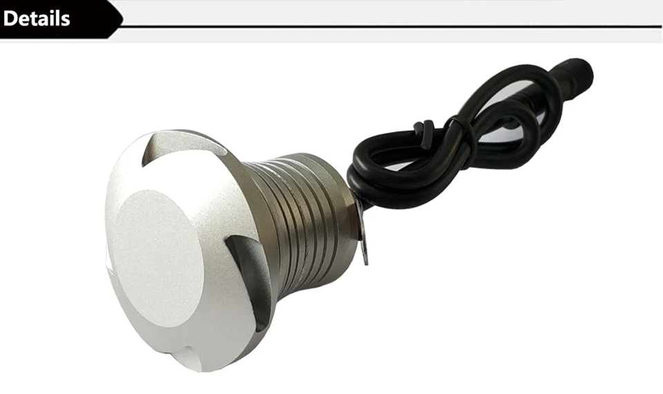 Модель 3W LED подземный свет Входное напряжение и частота DC12V/24V Источник света CREE XBD светодиодных чипов Материал корпуса Алюминий и нержавеющая сталь Мощность 3 Вт Цветовая температура Теплый белый (3000K), натуральный белый (4000K), холодный белый (6000K) Световой поток 235Lm Ультратонкое естественное освещение CRI > 80Ra Луча градусов X3 X4 X5 Рабочая температура -25 °C ~ + 45 °C Класс защиты от поражения электрическим током IP67 Сертификат В Китае (стандарты CE, по ограничению на использование опасных материалов в производстве Измерение & Phi; 50 * H41mm, 35-45mm Cut[& phi; 1,97 * H1.61in, 1,38 * 1.77in Cut] Время доставки 4 рабочих дней Гарантия 3 года Источник света, длительный срок службы 35000(h)