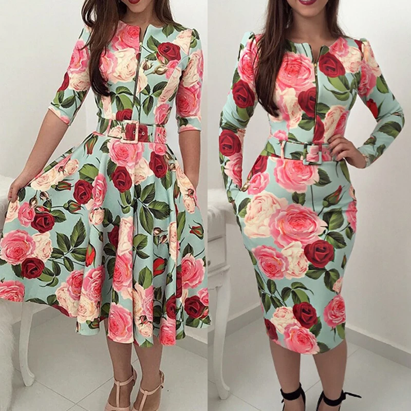 Стиль: сексуальное платье с цветочным принтом; Облегающее платье