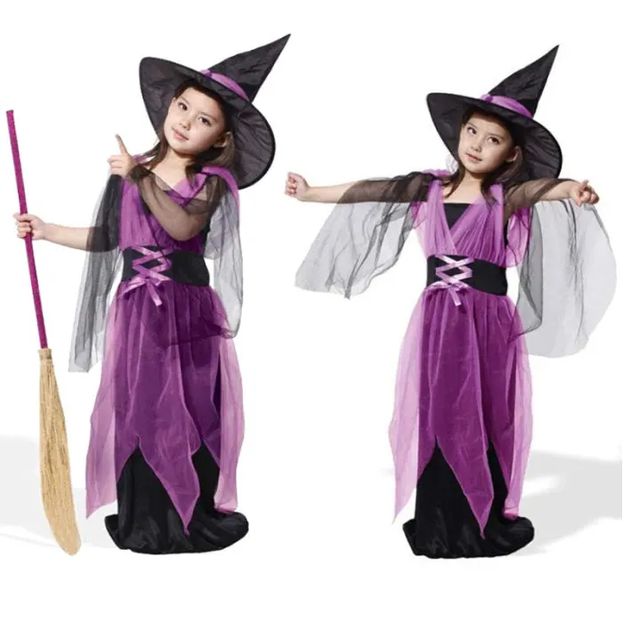 Тип одежды: детское платье ведьмы на Хэллоуин для девочек + шляпа; Детские вечерние платья принцессы; Карнавальный костюм