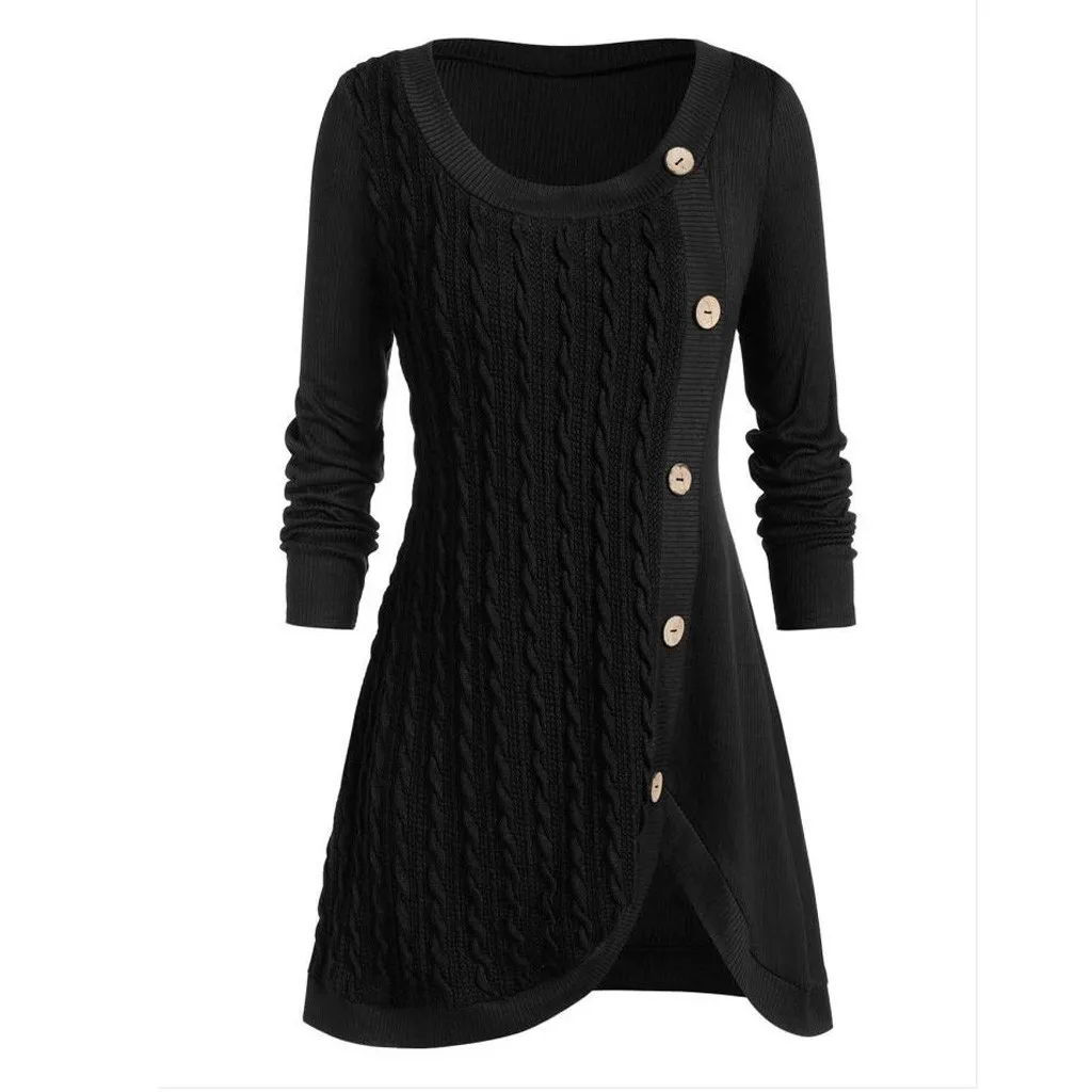 1 Особенности: размера плюс, с О-образным вырезом, с длинным рукавом, одноцветное, с пуговицами, носки-башмачки, ассиметричный, топы, блузы, модный свитер