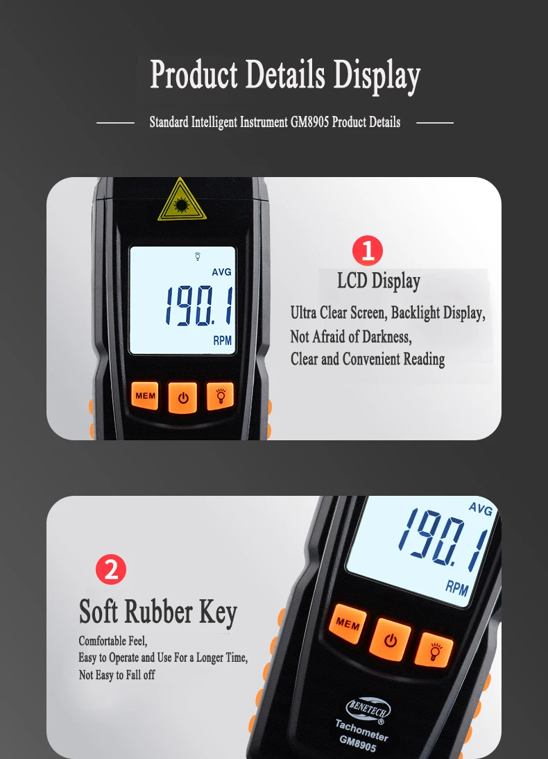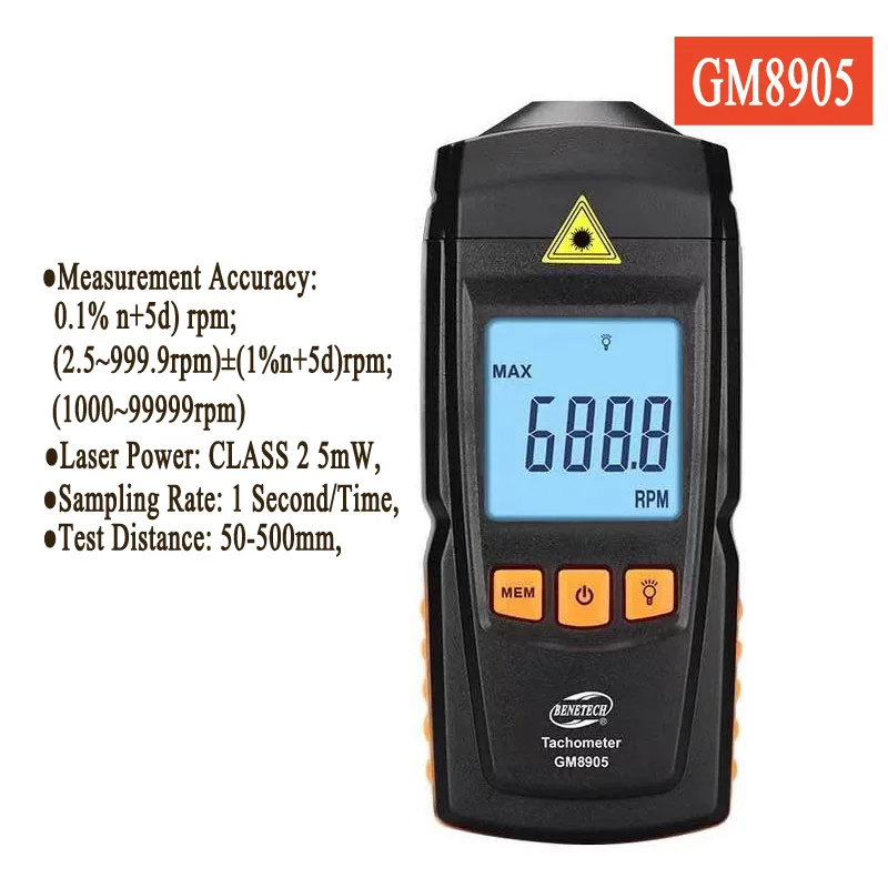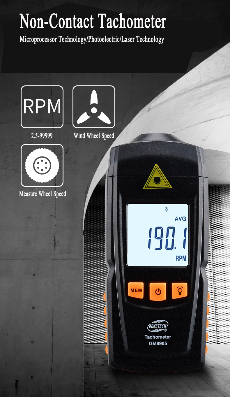 Бесконтактный цифровой лазерный тахометр с ЖК-подсветкой BENETECH GM8905