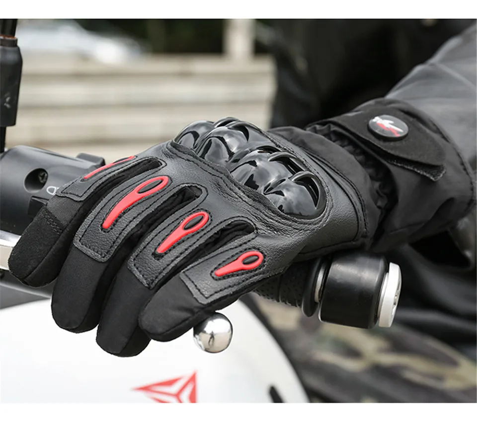 Особенности: 1. Сенсорный экран пальца для gps устройства и смартфона. 2. Ткань Taslon, водонепроницаемая, хорошо подходит для дождя и катания на лыжах, светильник. 3. Защитная Экипировка для пальцев, муфта из ПВХ, хорошая защита для ваших рук. 4. Ладонь Нескользящая ткань, может захватывать вещи прочно, лучше контролировать ваш мотоцикл. 5. Расширенные манжеты, бархатная подкладка и ветронепроницаемый материал согревают руки в холодную зиму. 6. Липучка на манжете, может регулировать герметичность и предотвратить ветер. 7. Каждая деталь предназначена именно для езды на мотоцикле зимой. Материал: Наружная оболочка: микрофибра, таслан, ПУ, ПВХ защитное снаряжение, липучка Подкладка: бархат, хлопок Размер: M/L/XL Цвет: черный/красный/синий Сезон: Осень, Зима Посылка включает в себя: 1 Пара мотогонок перчатки