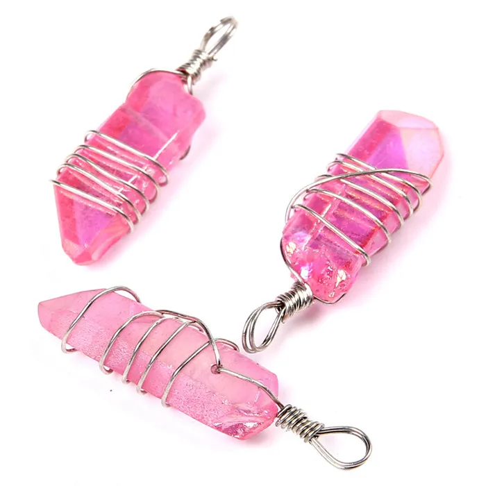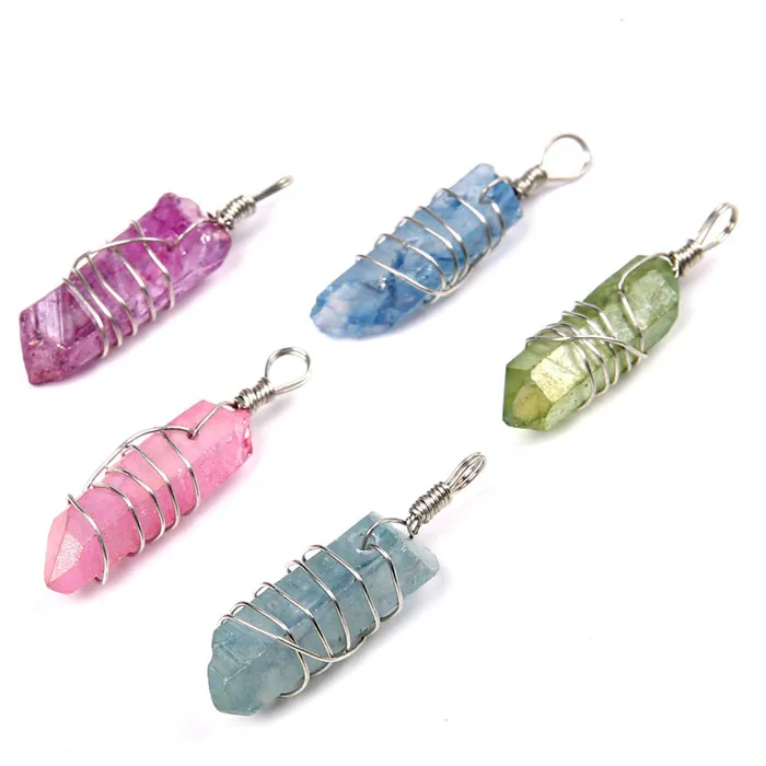 1pc Natural stone Hand maded amethysts blue olive green crystal necklace pendant for women and couples