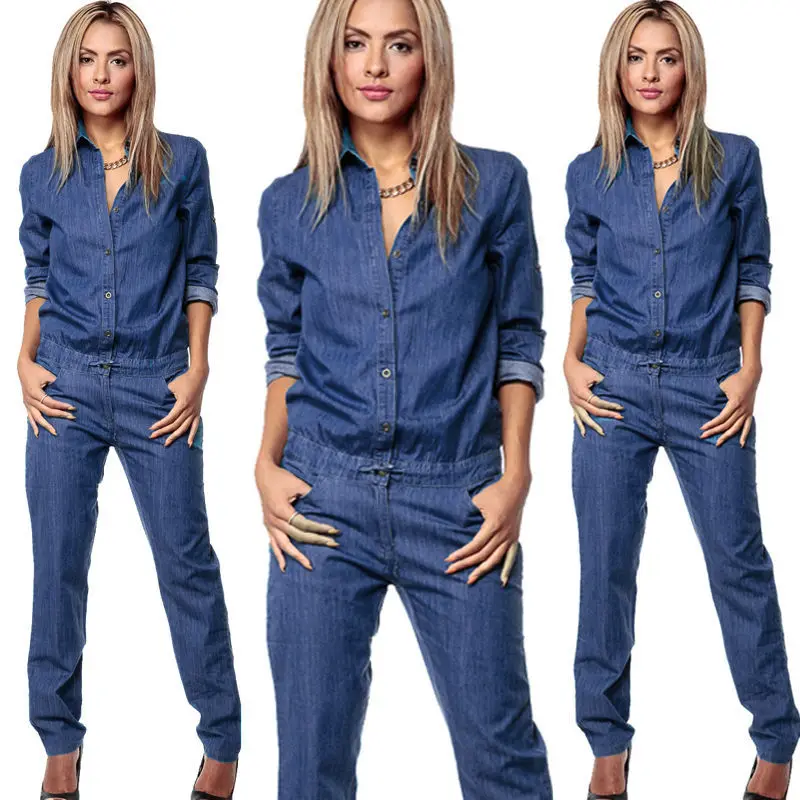 Женский джинсовый комбинезон, джинсы, Цельный Наряд, карго, рабочая одежда, Офисная Леди, повседневный Осенний комбинезон, костюм с длинным рукавом, Комбинезоны для женщин