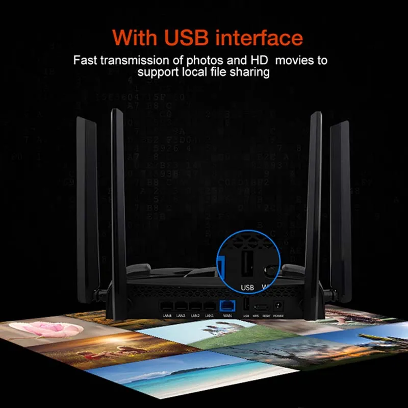 Принимает Топ MTK7621A + MT7615N + MT7615N игровой чип, встроенный 128 Мб оперативной памяти + 16 Мб флэш-памяти, обеспечивает более высокую производительность, с интерфейсом USB, поддерживает обмен файлами