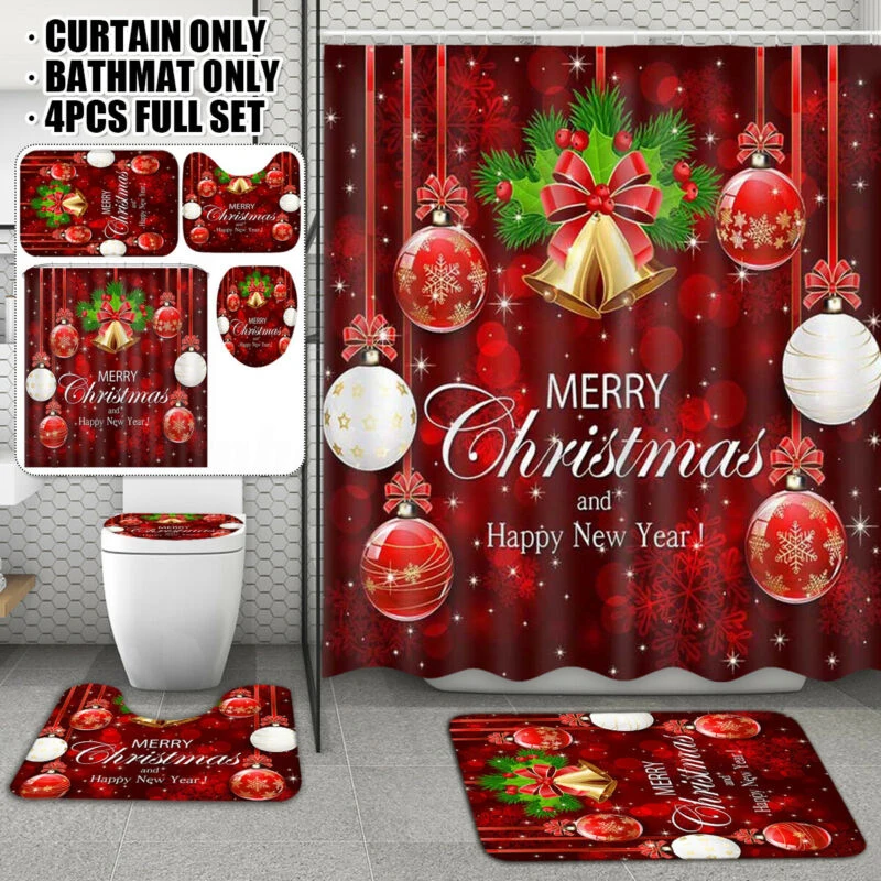 (4 шт.): Занавеска для душа + ковер + сиденье для унитаза + крышка для унитаза