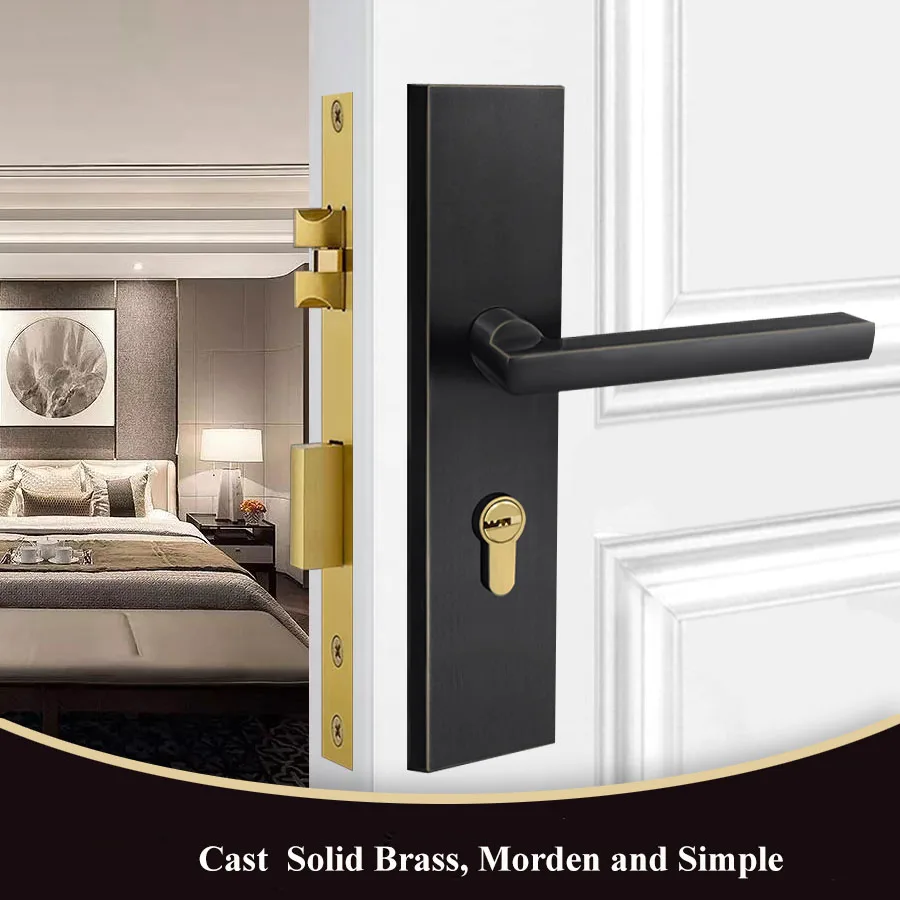 Черная/Золотая латунная дверная ручка и замок
