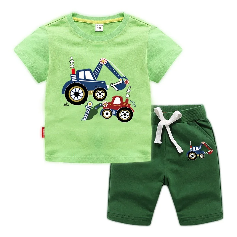 TUONXYE Summer Children's Clothes For Boy Cartoon excavator T Shirt+Pants Kids Short Sleeve Clothing Set Teens Sport Tracksuit