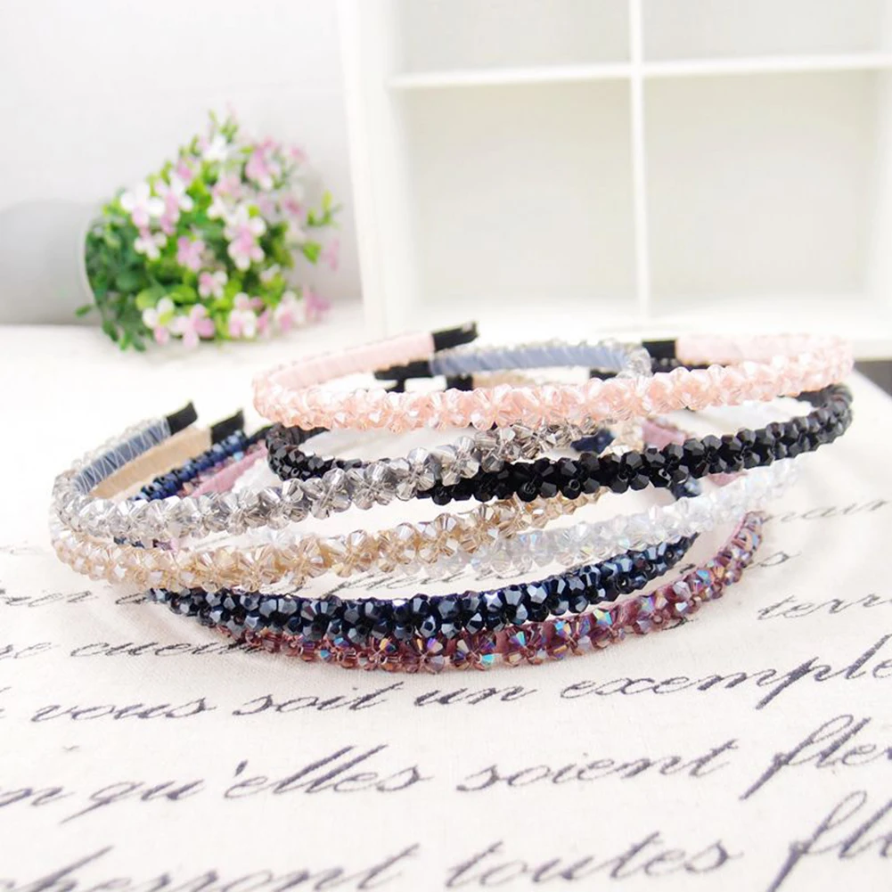 Блестящий Кристалл бисера обруч для волос повязка для головы с цветком ручной работы аксессуар для волос