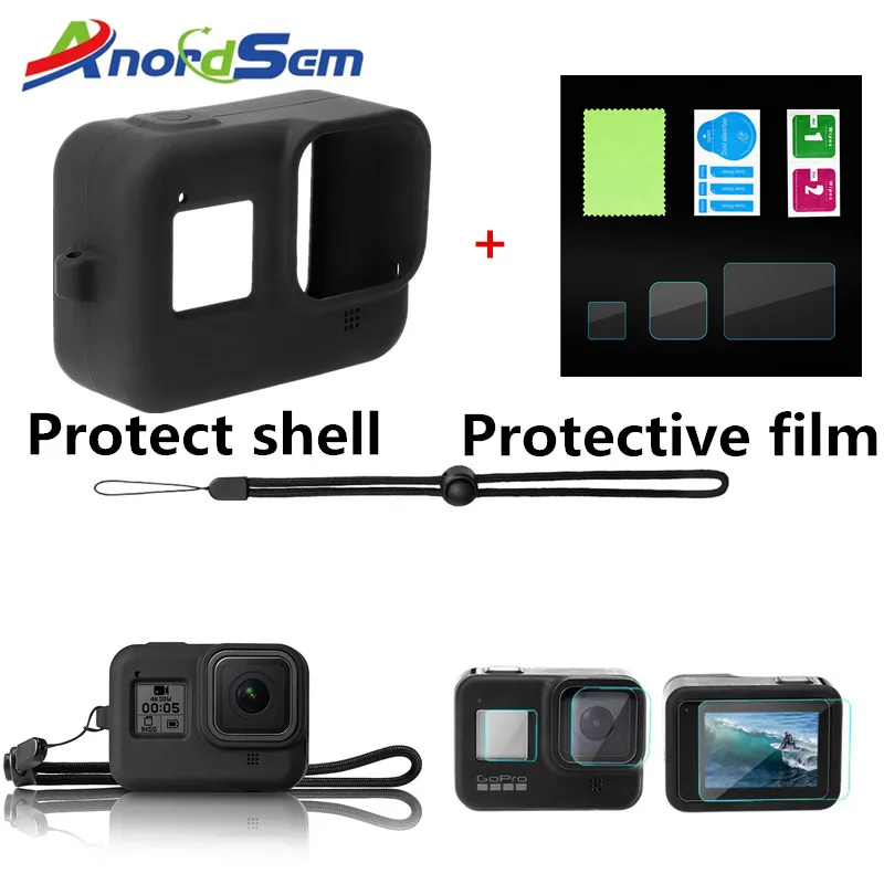 Мягкий силиконовый защитный чехол + Защитная пленка для объектива + Защитная пленка для экрана для камеры Gopro Hero 8 Black