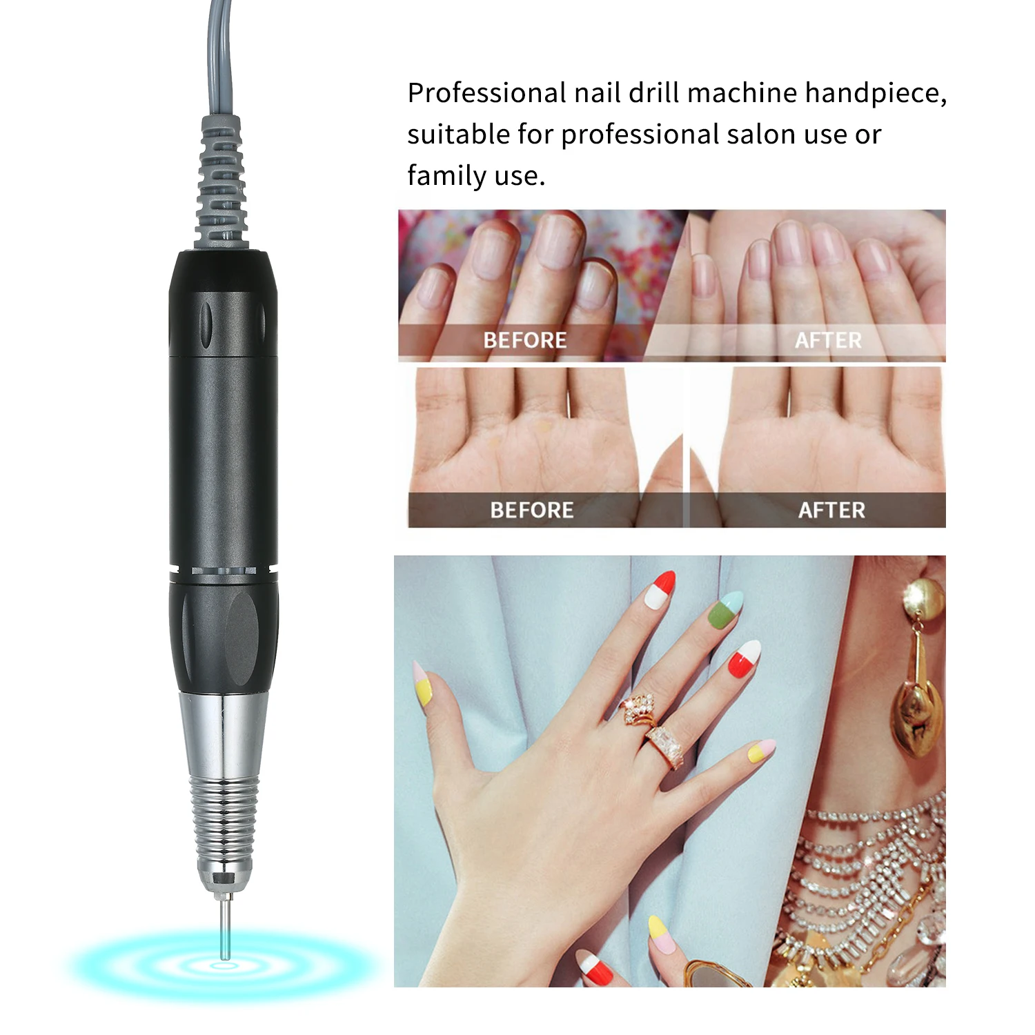 Простота в эксплуатации-легко менять сверло, новичок может также выбрать его. Эргономичная ручка захвата, удобно держать в руке, хорошо подходит для работы. Профессиональный гвоздь сверлильный станок наконечник, подходит для Профессионального салонного использования или семейного использования.