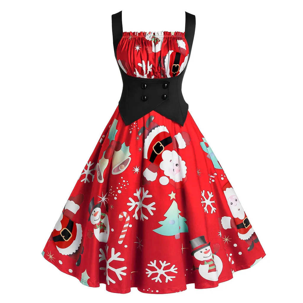 1. Женское винтажное платье с длинными рукавами, рождественским принтом, домохозяйка, вечерние платья, платье для выпускного вечера.