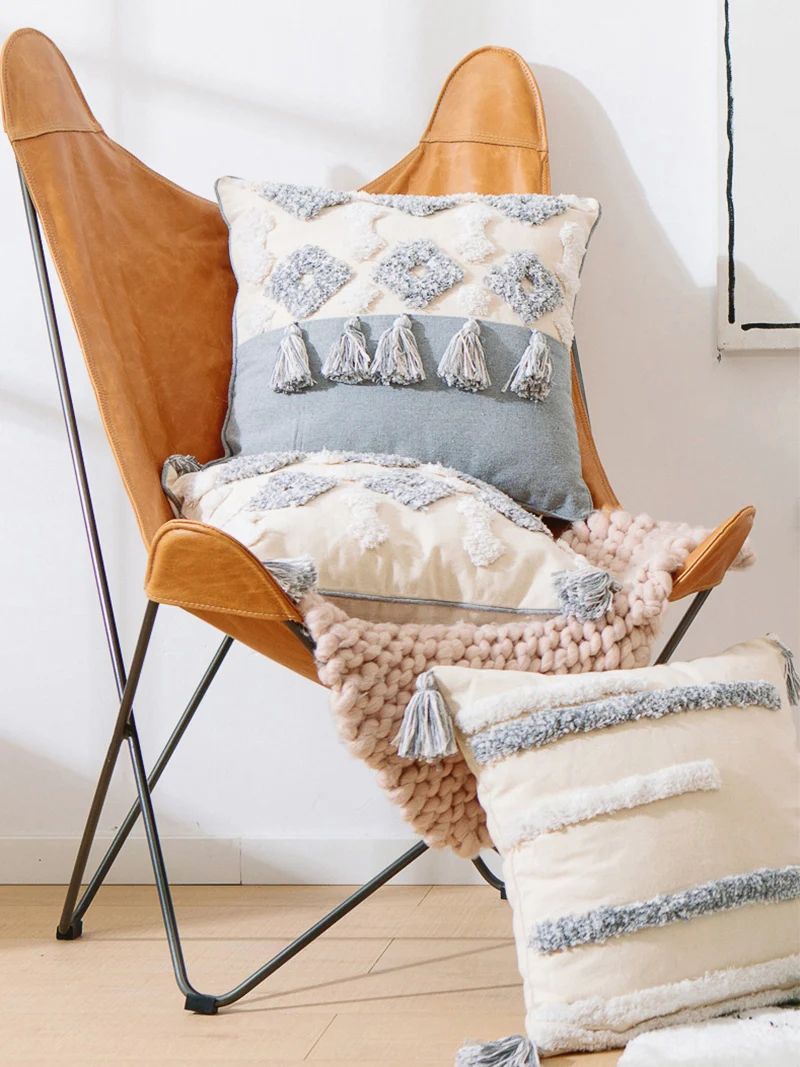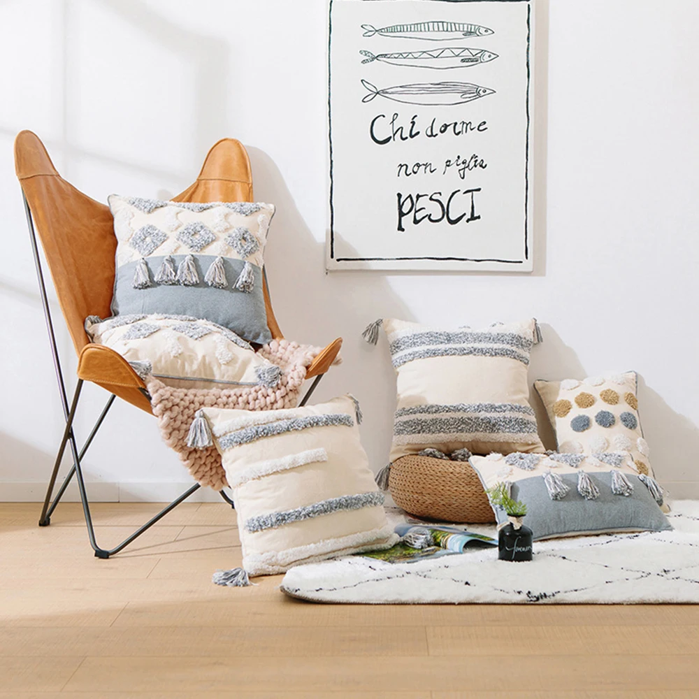 Скандинавская Марокканская Геометрическая подушка с кисточками наволочка для объятий