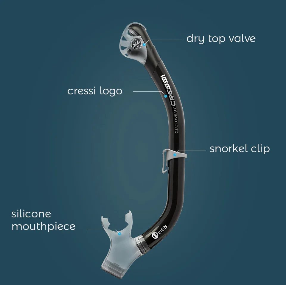 + Dry top дизайн Клапан автоматически уплотняет при погружении + Трубка зажим Быстрое крепление к любой маске cressi + Силиконовый мундштук Мягкий силикон уменьшает усталость челюсти