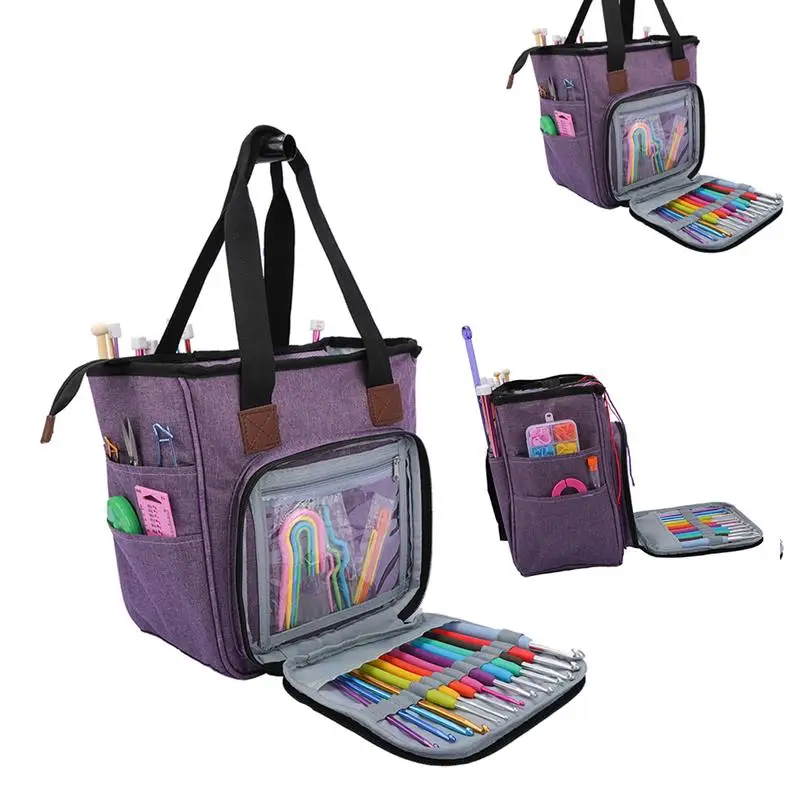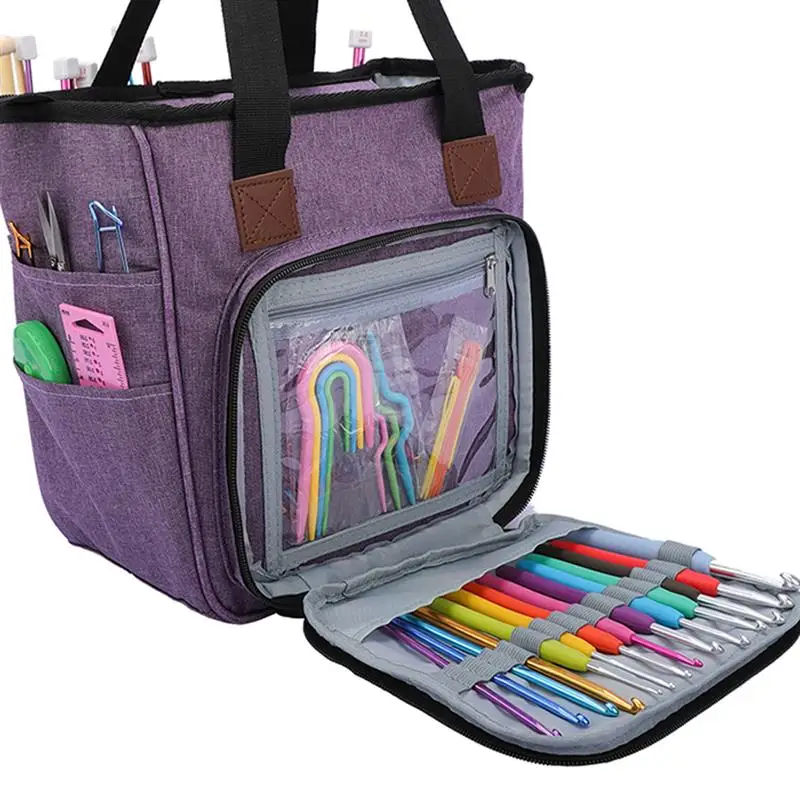 Удобная сумка для вязания крючком, чтобы взять с собой куда бы вы ни отправились или хранилище для вашего швейного комплекта и вязальных принадлежностей дома. Сумка для хранения пряжи легко переносится с ручкой или съемным плечевым ремнем идеальный органайзер для путешествий.