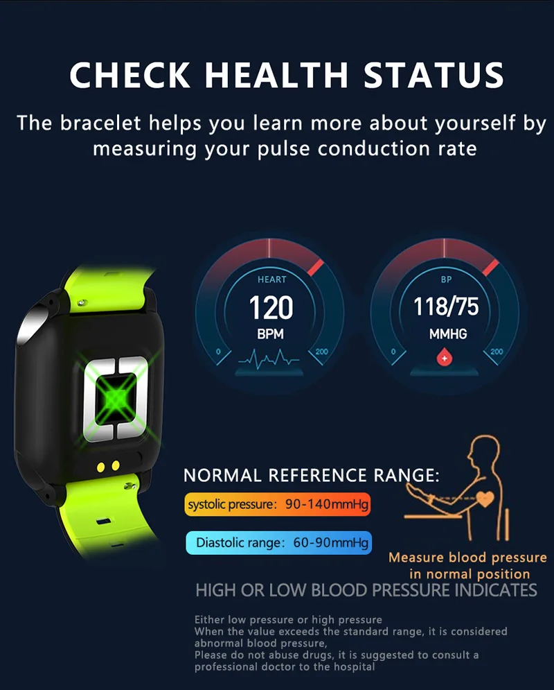 Один F16 смарт-браслет=1 электрокардиограф + 1 кардиотахометр + 1, измеритель артериального давления, детектор