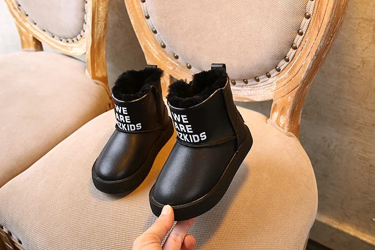 Зимние детские ботинки, меховые ботильоны для маленьких девочек, детская теплая обувь, брендовые ботинки черного цвета для малышей, модные мягкие повседневные ботинки для мальчиков