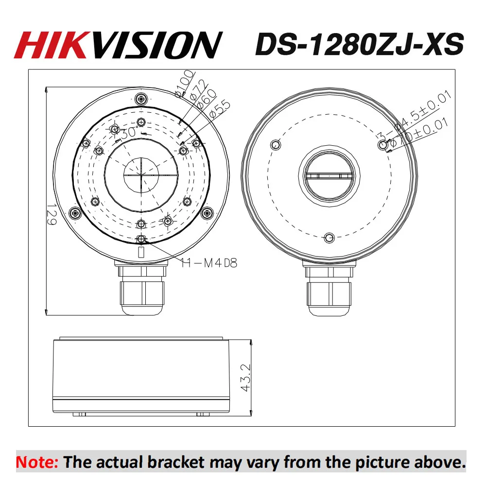 Aluminum alloy material with surface spray treatment Exquisite cable entrance design Waterproof rubber blanket for outdoor application Convenient installation coordinating with adaptor Specification Model : DS-1280ZJ-XS Parameters : hidden Junction box for Dome ( Bullet ) Camer Range of Application : Hidden junction box Material : Aluminum alloy Dimension : 100 * 43.2 * 129mm Weight : 320g Model Suitable Bullet Camera :DS-2CD2045FWD-I, DS-2CD2085FWD-I. Cube Camera:DS-2CD2542FWD-I(W)(S).