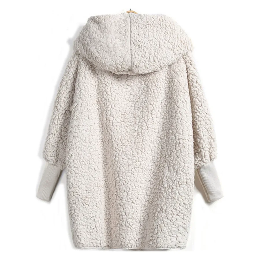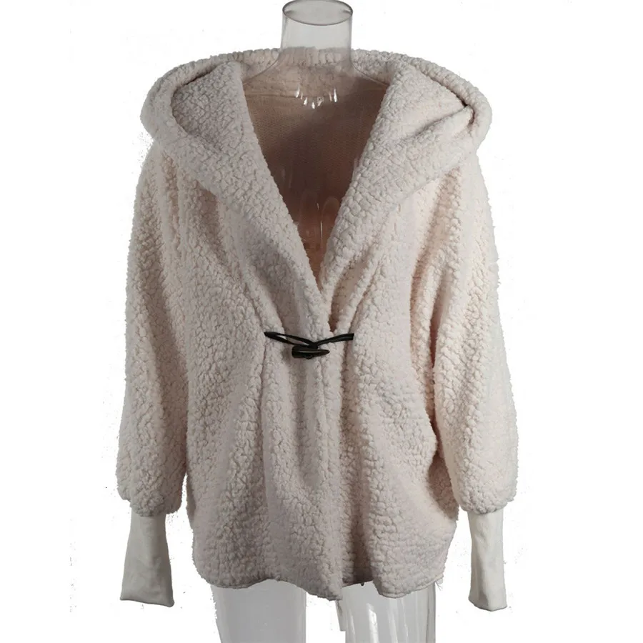 Осенне-зимнее женское плюшевое пальто 2019 новые толстые теплые куртки из искусственного меха женский длинный плюшевый кардиган с капюшоном пальто с роговыми пуговицами коммутируют