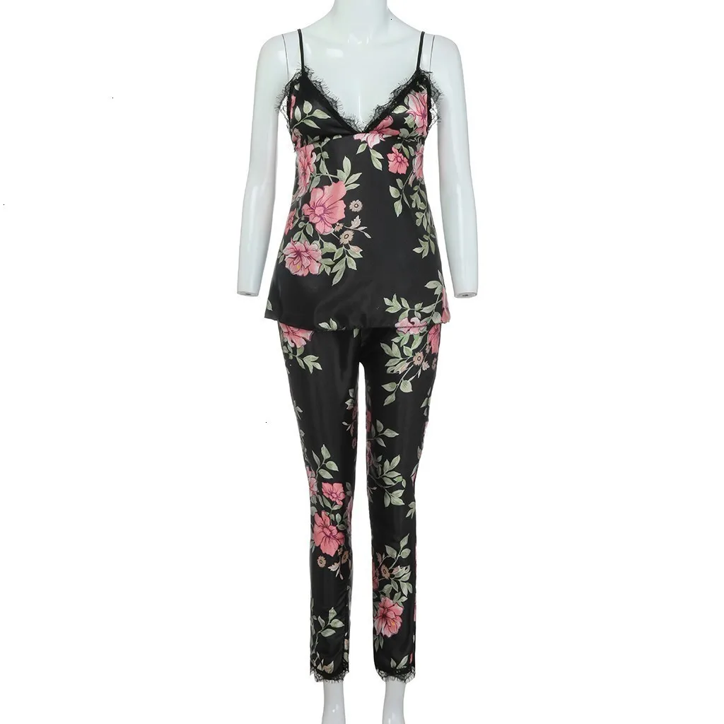 Модные женские шелковые атласные пижамы с принтом, кружевные пижамы с v-образным вырезом, комплект из жилета и брюк, пижамы для женщин, сексуальное женское белье, новинка 2019