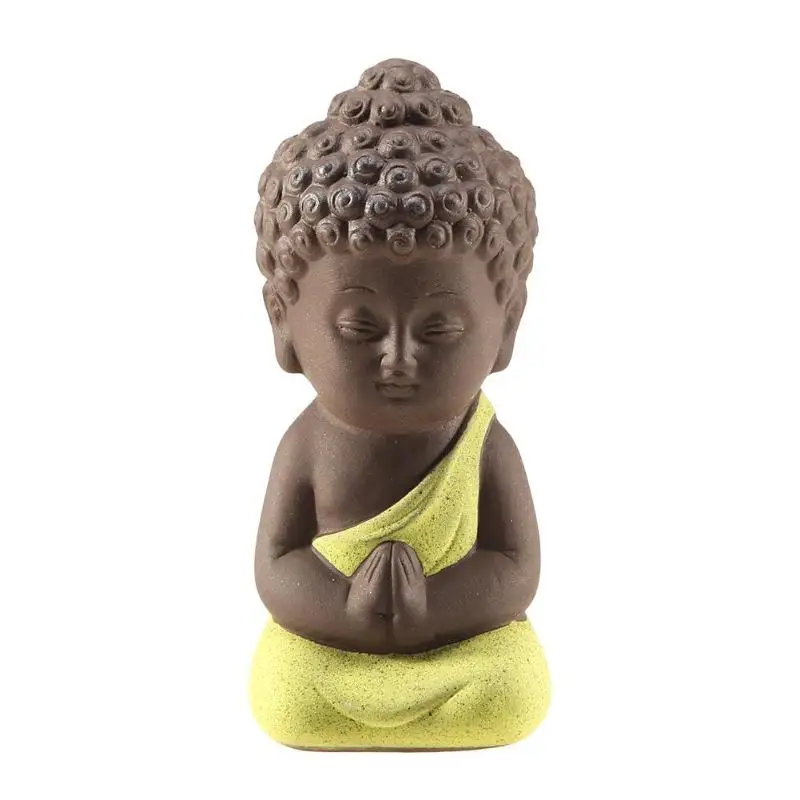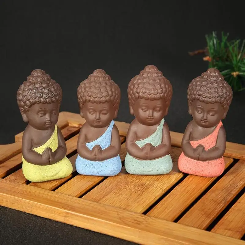 Маленькая статуя Будды, статуэтка монах, тафагата, чай, питомец, фиолетовый, керамика, ремесла, автомобильный цветочный горшок, декоративные украшения