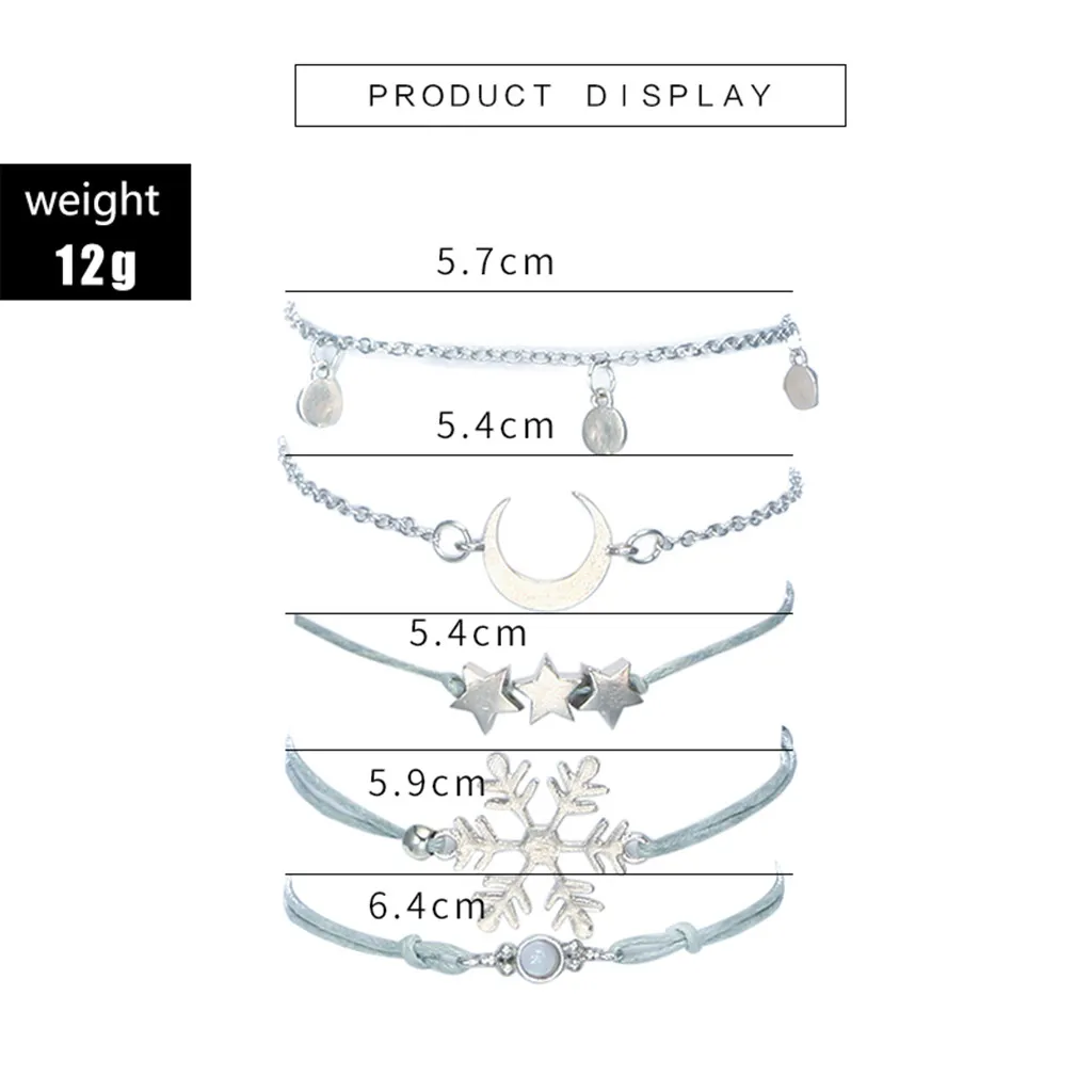 Женский браслет со снежинкой, браслет с пятиконечными звездами, Луной и открытым браслетом