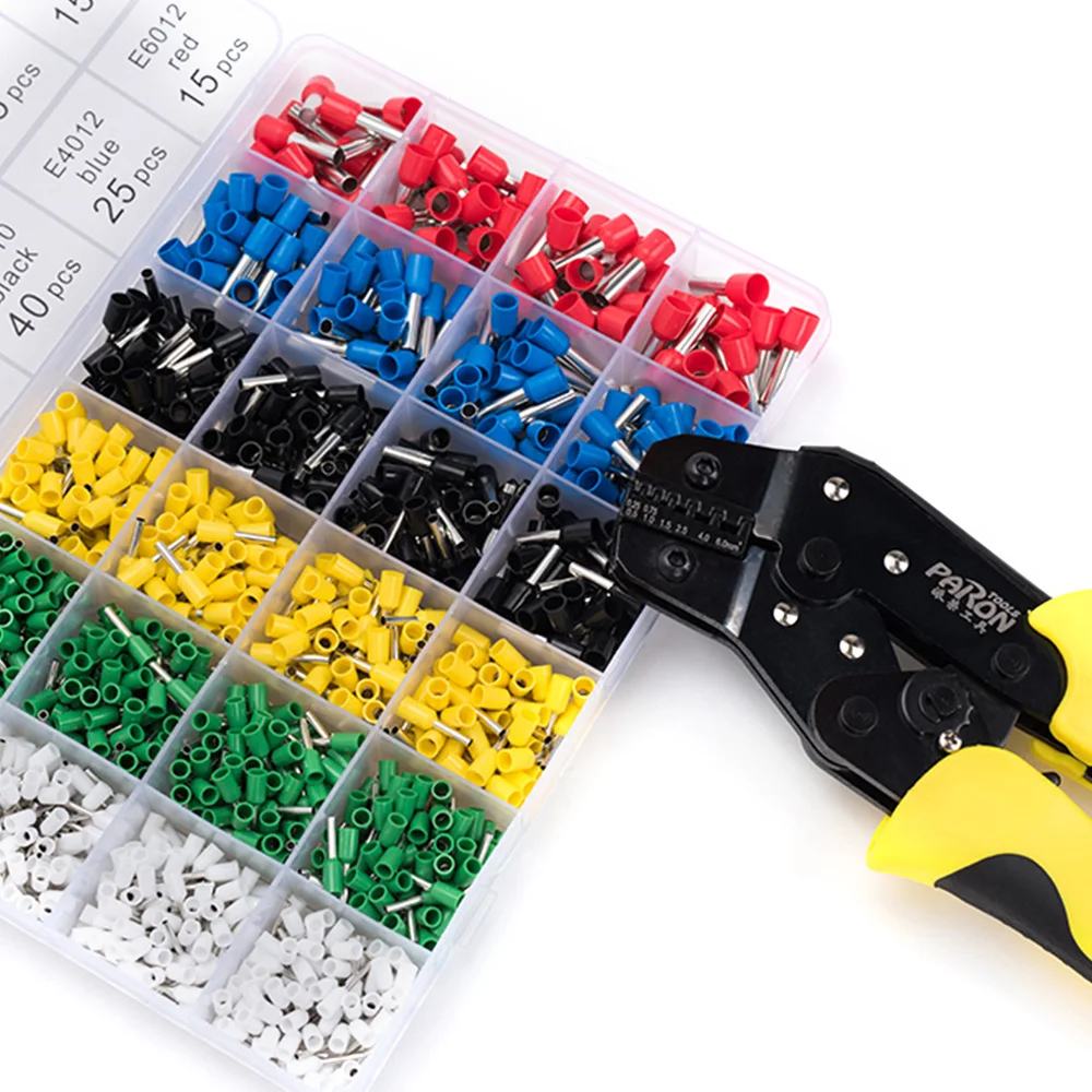 Полный обжимной инструмент комплект --- полный оснащен обжимной инструмент и 1200 Изолированные Наконечники провода открытые баррель разъем от 20 до-10 AWG (0,5-6.0mm ²) для поддержки малого DIY проектов и большой электрические ремонт. С регулировочным винтом вы можете регулировать прочность обжима.