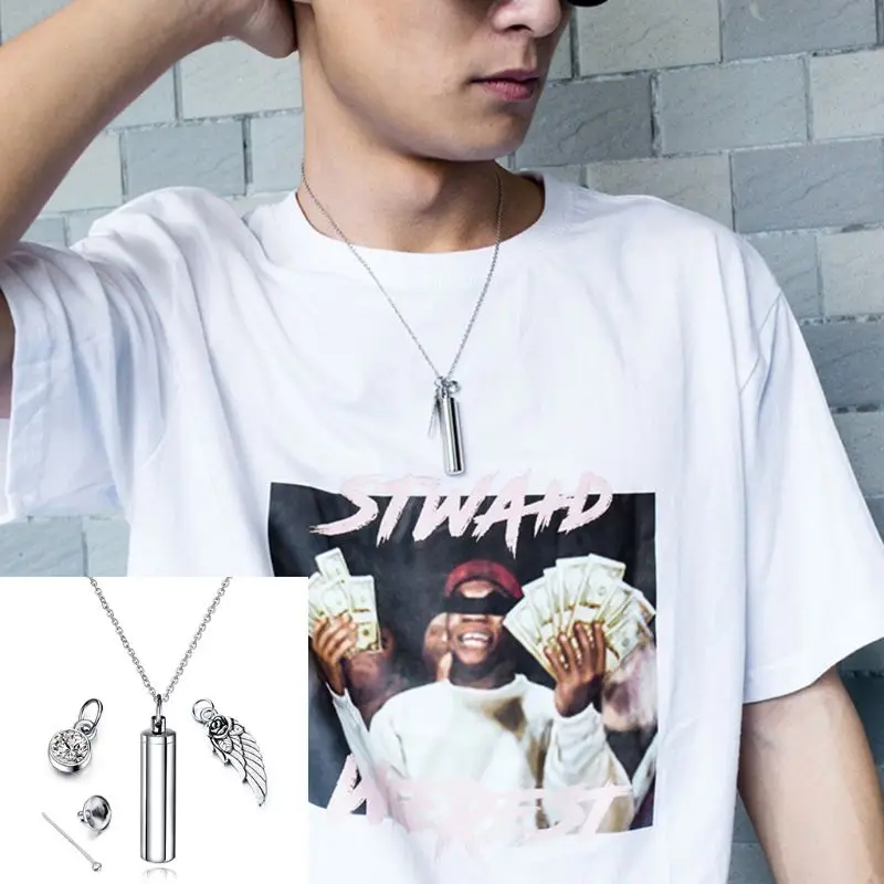 Размеры: цилиндра: 4,7x1,1 см (1.85inx0.4in); Толстовка с капюшоном, надписью «angel» и принтом «крылышки: 3 см (1.18in); Регулируемая длина цепи: 50 см (19.69in)