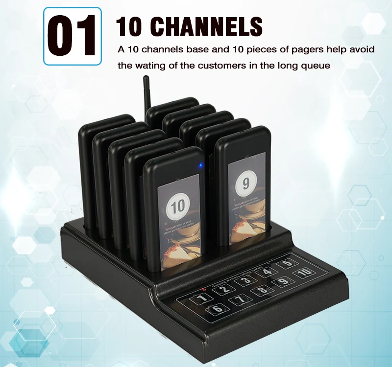 1. 10 каналов ---- 10 каналов базы и 10 штук пейджеров помогает избежать ожидания Клиенту в очереди в значительной степени.