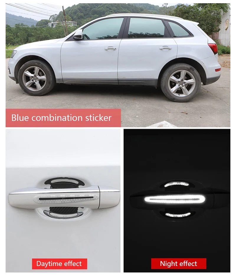 Автомобильная наклейка светоотражающая дверные ручки Предупреждение лента украшения из углеродного волокна двери автомобиля Безопасность стикеры 5D наклейки для авто светоотражающие полосы