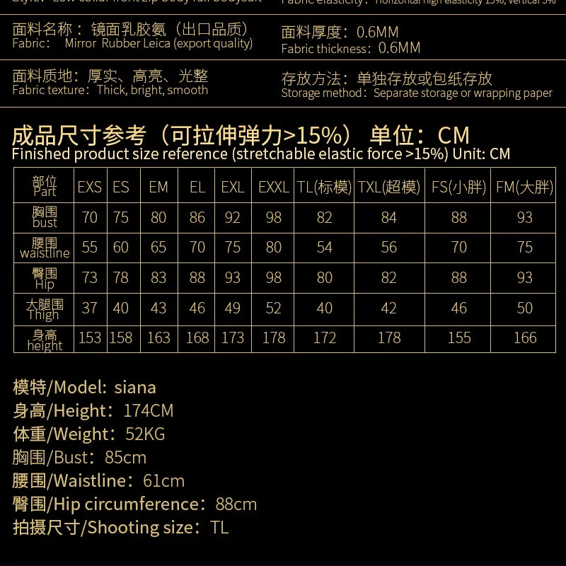 Облегающий комбинезон из ПВХ с молнией и длинным рукавом