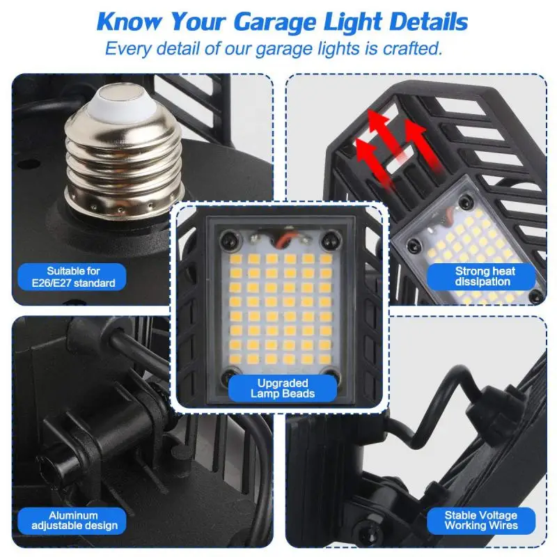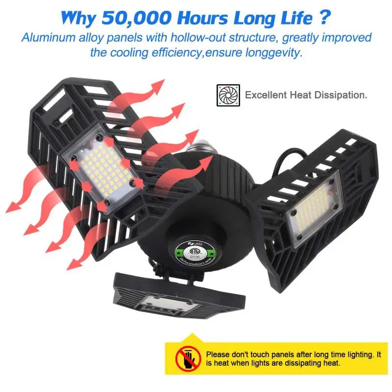 -Удобный Регулируемый дизайн для светодиодной подсветки для парковки-уникальный широкоугольный светодиодный светильник льник, каждое крыло регулируется на 90 градусов, который может иметь идеальную кривую распределения освесветильник в гараже в соответствии с вашим приложением, это сделает покрытие светильник на 360 °. Идеально подходит для гаража, склада, мастерской, гаража, подвала, автомагазинов и т. д.