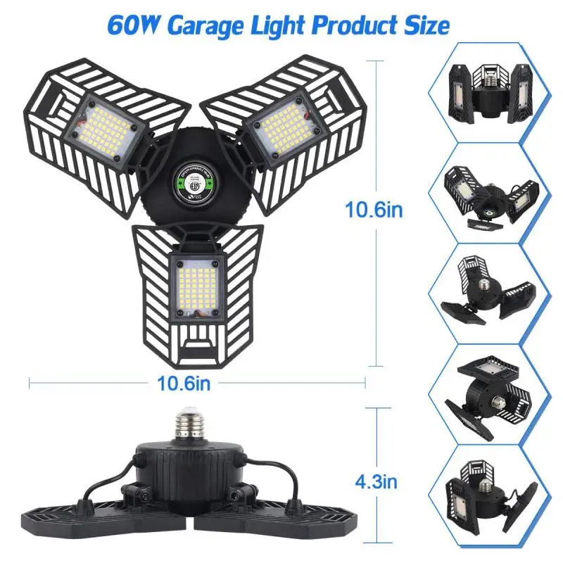 -Прочная и длительный срок службы 60/80 Вт светодиодсветильник лампа для гаража-эта лампа для магазина мощностью 60 Вт изготовлена из безопасного корпуса из алюминиевого сплава премиум-класса, стабильная и долговечная при максимальной производительности, более 50000 часов постоянного времени работы резко сокращают затраты на техническое обслуживание