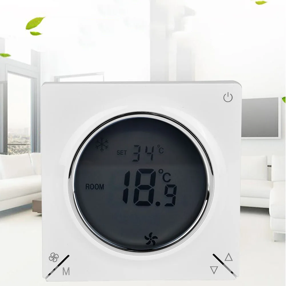 Термостат с цифровым дисплеем в виде катушки вентилятора подходит для контроля температуры в двух системах управления водой или ветром. Управляйте электрическим шаровым клапаном или демпфером в конце системы кондиционирования воздуха путем сравнения температуры окружающей среды, катушки вентилятора и электрических клапанов. Термостат использует технологию управления микрокомпьютером, супер большой ЖК-экран, красивый дизайн, прост в использовании. Его комфорт и энергосбережение, вы можете нажать кнопку горячего и холодного режима и установить желаемую температуру в помещении. Корпус изготовлен из огнезащитного материала PC + ABS, который является прочным для долгосрочного использования.
