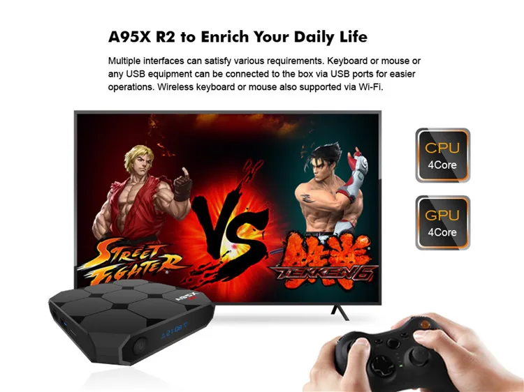Набор микросхем S905W Quad-core Cortex-A53 до 1,5 ГГц GPU четырехъядерный GPU Mali-450 Оперативная память 2 Гб DDR ПЗУ 16 Гб EMMC