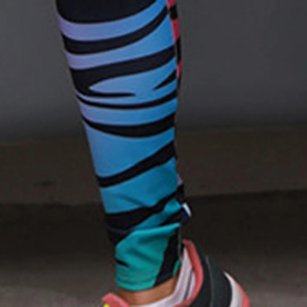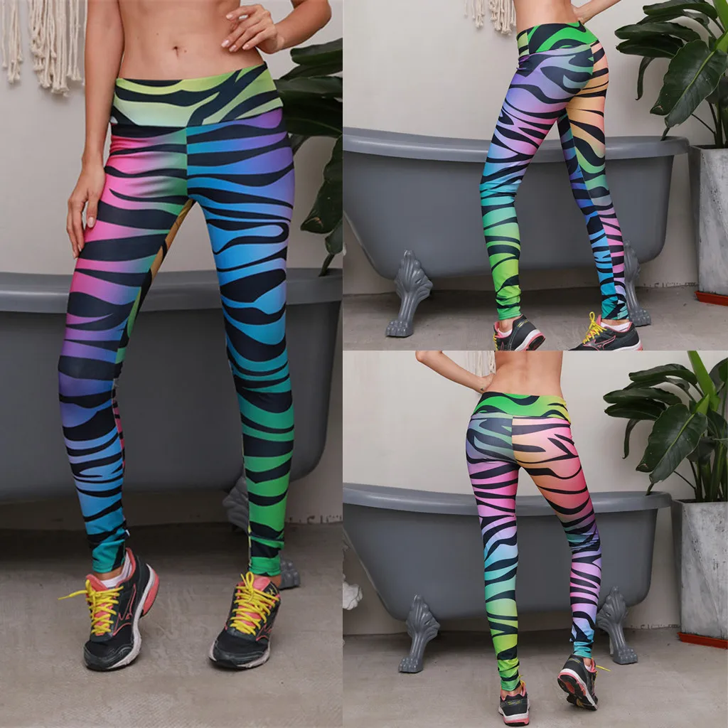 Женские штаны для йоги с цифровой печатью и цветными зебрами, Стрейчевые штаны с высокой талией