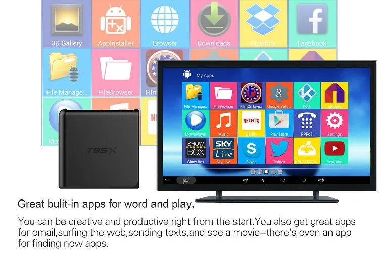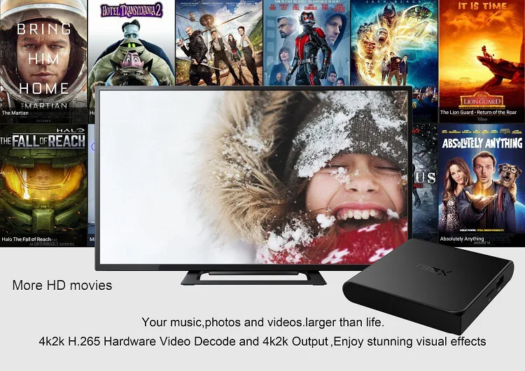 ОС Android 6,0 Коди 16,1 WIFI 2,4 ГГц 3D Жесткое 3D Графическое ускорение Формат декодера поддержки HD MPEG1/2/4,H.264, HD AVC/VC-1,RM/RMVB,Xvid/DivX3/4/5/6 ,RealVideo8/9/10 Поддержка медиаформата Avi/Rm/Rmvb/Ts/Vob/Mkv/Mov/ISO/wmv/asf/flv/dat/mpg Поддержка музыкального формата MP3/WMA/AAC/WAV/OGG/AC3/DDP/TrueHD/DTS/HD/FLAC/APE Поддержка формата фото HD JPEG/BMP/GIF/PNG/TIFF Usb-хост 2 высокоскоростной USB 2,0, поддержка u-диска и USB HDD Кард-ридер Карты TF/SDHC/MMC HDD файловая система FAT16/FAT32/NTFS Подзаголовок поддержки SRT/SMI/SUB/SSA/IDX + USB Высокое качество видеовыхода SD/HD Макс. 3840X2160 пикселей OSD тип языков Английский/французский/немецкий/испанский/итальянский/и т. Д. LAN Ethernet:Gigabit 10/100 м, стандартный RJ-45 Беспроводная связь Встроенный WiFi Мышь/клавиатура Поддержка мыши и клавиатуры через USB; Поддержка 2,4 ГГц Беспроводная мышь и клавиатура через 2,4 ГГц USB донгл HD Выход HD 2,0 до 4k2k Декодирование 4K2k hd 4k2k H.265 аппаратное видео декодирование и выход 4k2k 1080P/AV/Dolby/3G Поддержка Технические характеристики программного обеспечения Функция сети Skype Чат, Picasa,Youtube, мерцание, Facebook, онлайн фильмы и т. Д. Прочие Функции Бесплатный поиск в Интернете, тысячи приложений android, много видов игр и т. д.