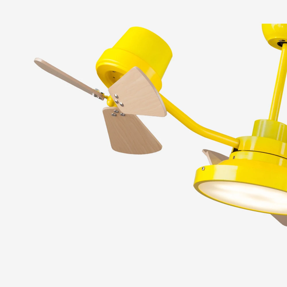 Креативные вращающиеся потолочные вентиляторы с подсветкой, желтая Синяя светодиодная лампа для детей, детский сад, спальня, деревянная мультяшная ветряная мельница