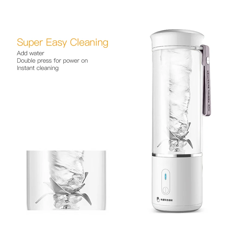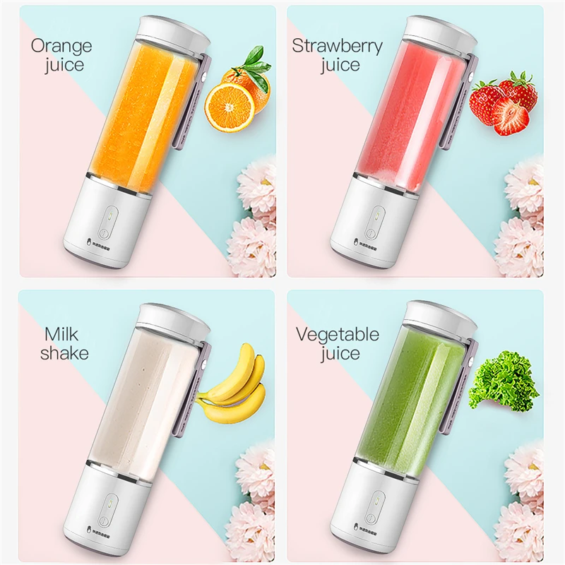 【Удобный дизайн 】дважды нажмите кнопку для мгновенного отжима сока. В ближайшее время нажмите для выключения питания. USB перезаряжаемая конструкция обеспечивает беспроводное использование в любом месте и в любое время.
