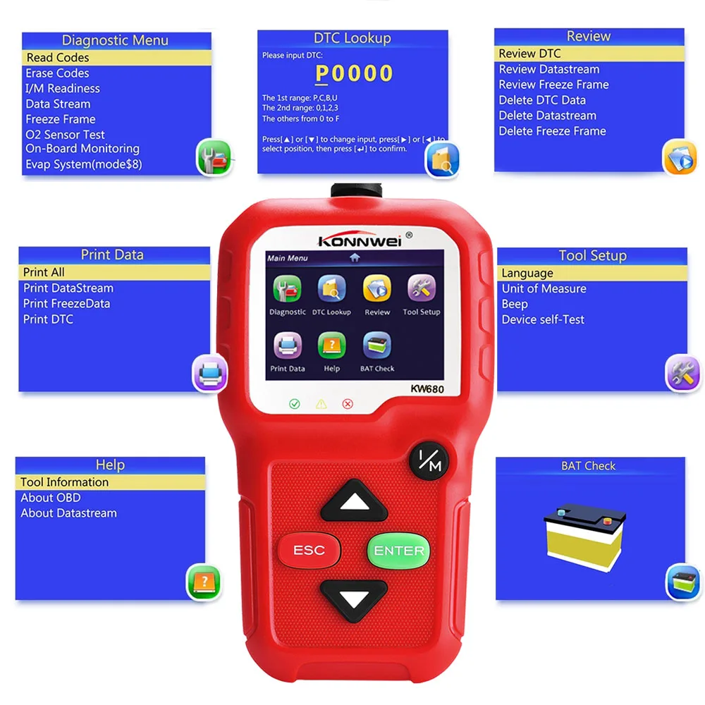 ISO 9141, KWP2000, SAE J1850, CAN, J1850 VPW, J1850 PWM.