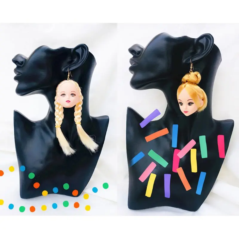 Креативные серьги с головой куклы
