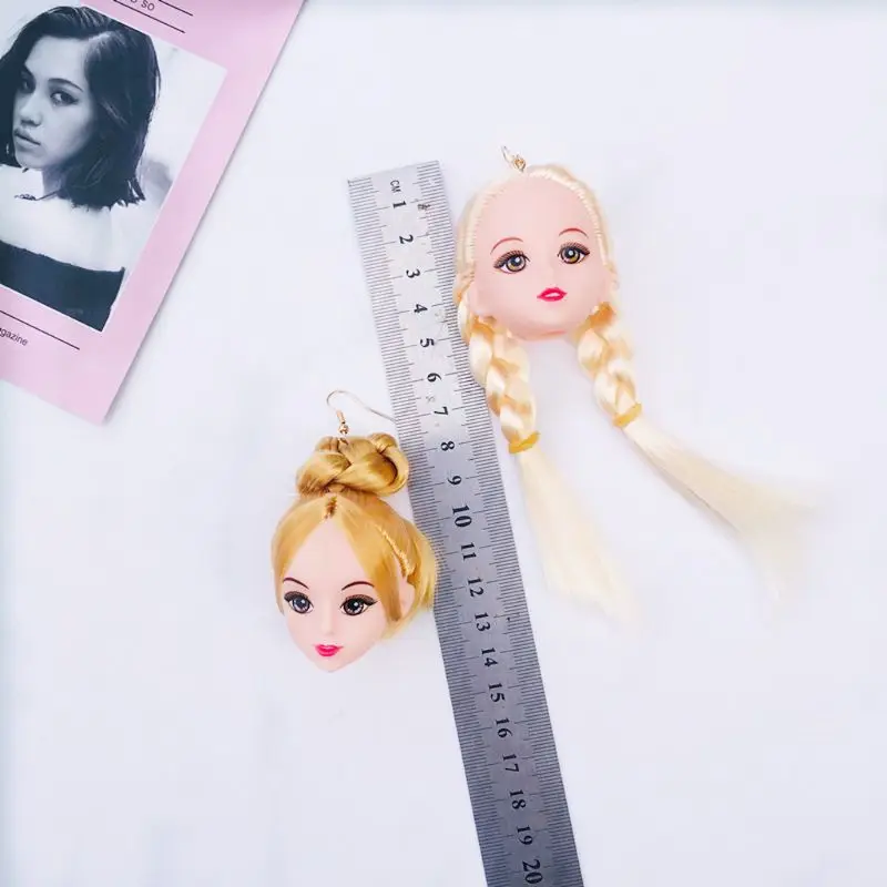 Креативные желтые волосы куклы голова Игрушка Висячие серьги Модные ювелирные изделия для женщин девочек AXYD